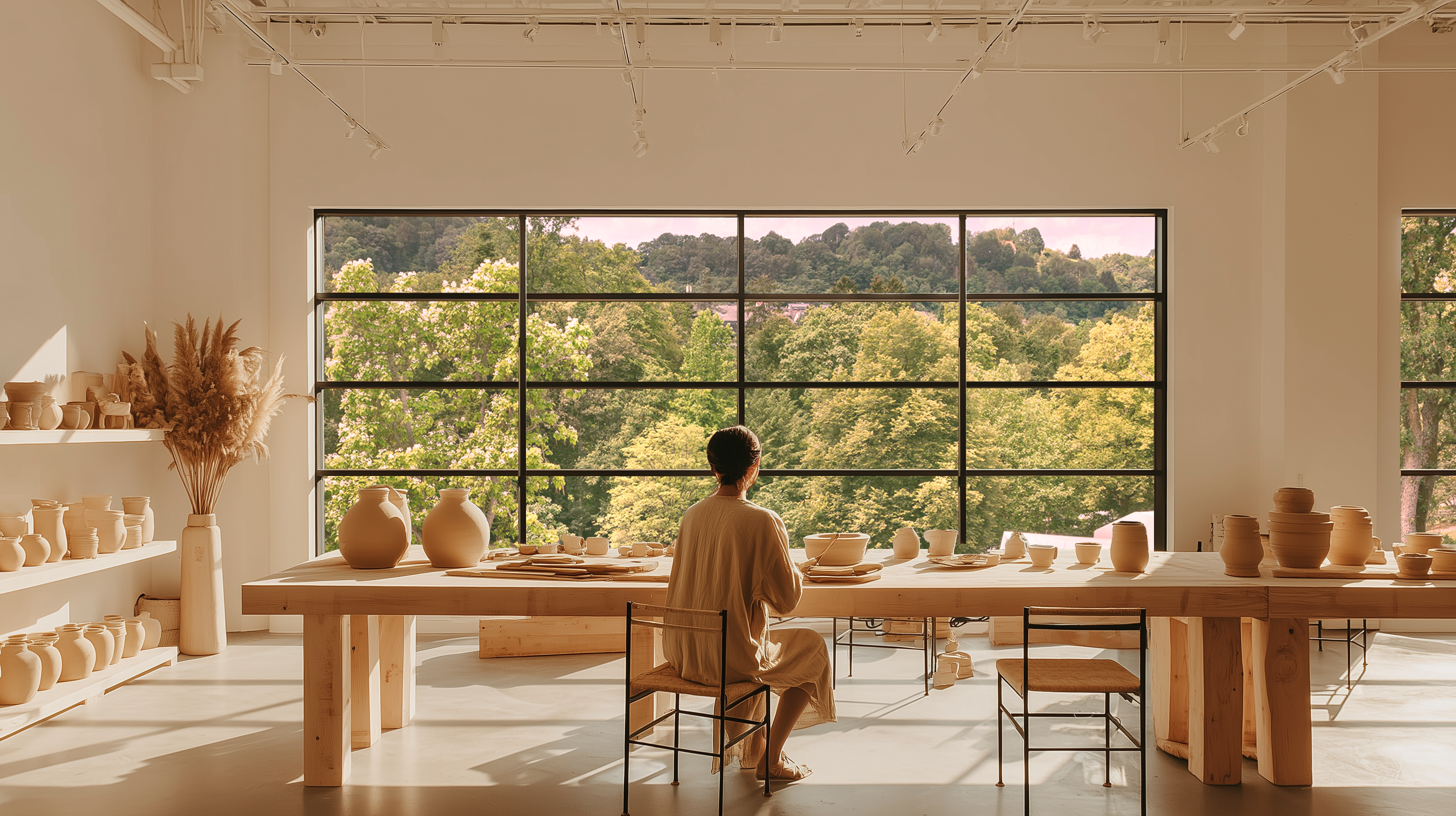 In the studio, ALEA Schlaufüchse will learn pottery, watercolor painting, tailoring, and layout design in art classes. Pottery in the treetops: on weekends, public pottery classes with a view of the park could take place in the studio.