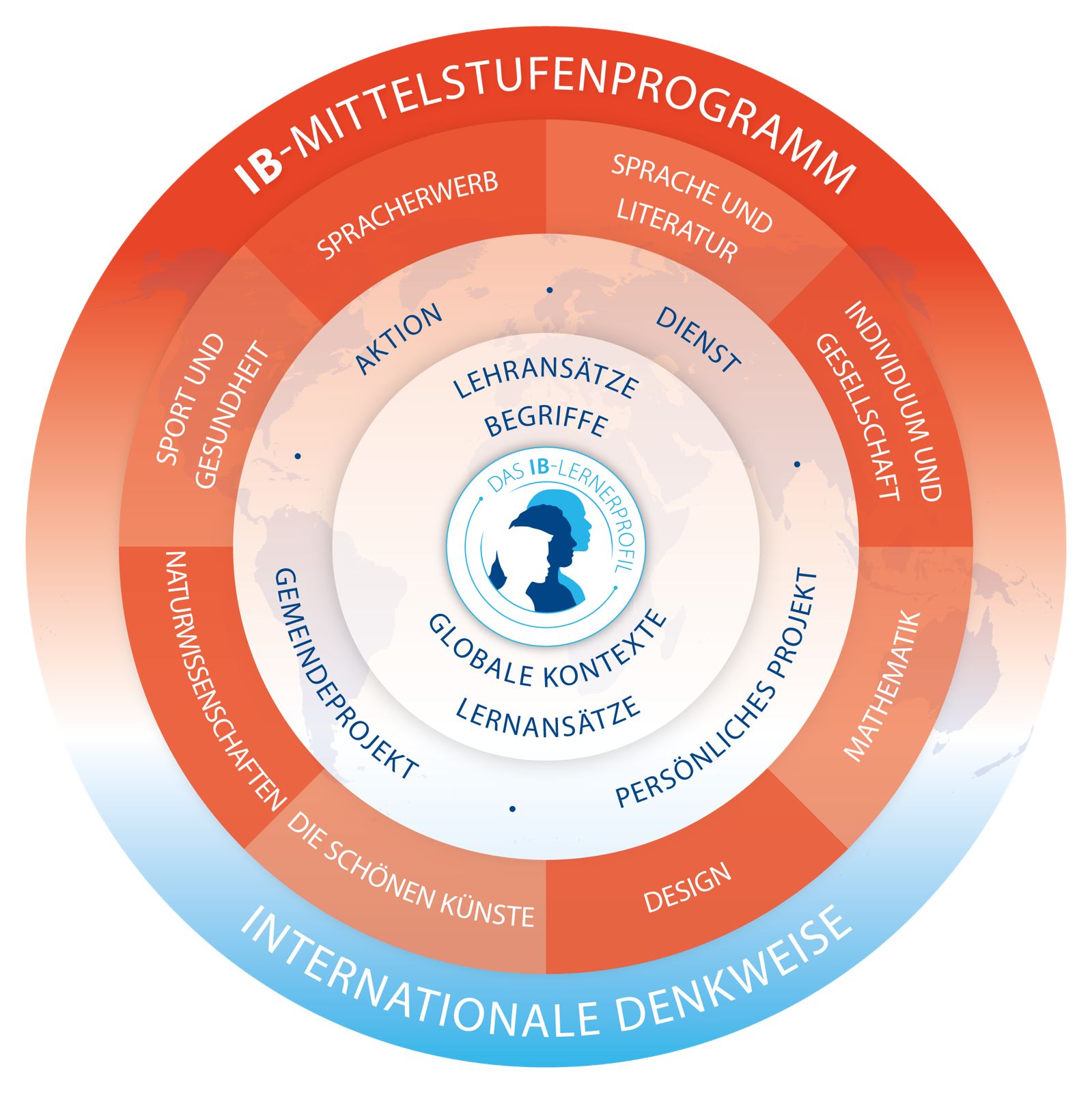 Die in der Stundentafel abgebildeten Fächer decken sich mit den im IB Programm aufgeführten acht Kernfächern: